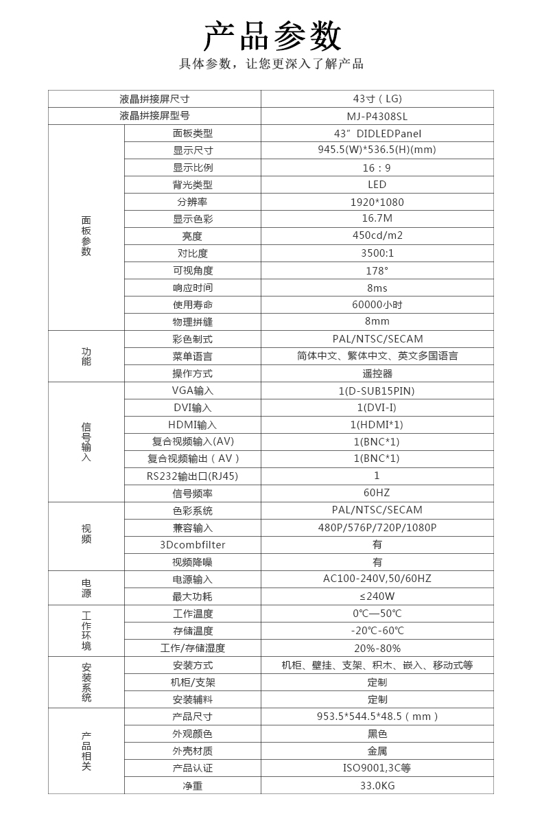 43寸 8mm -產(chǎn)品規(guī)格書 |