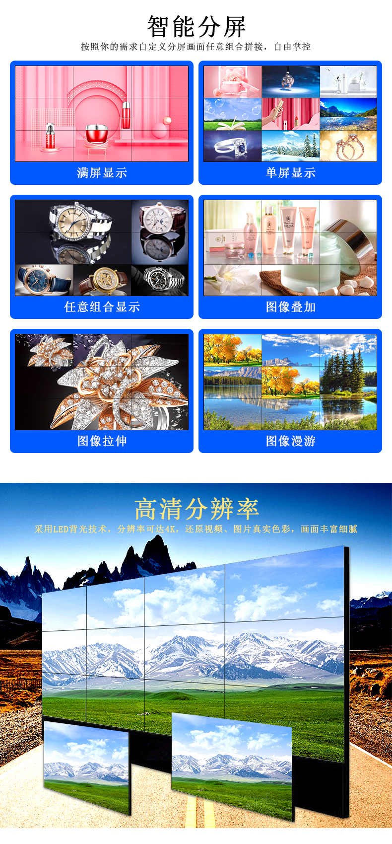 【美佳愛-4k液晶拼接屏生產(chǎn)廠家電話400-997-9971】LG55寸液晶拼接屏-拼縫8mm產(chǎn)品通過ISO9001_3C_節(jié)能認(rèn)證等30多項(xiàng)認(rèn)證,主營(yíng)LG/京東方/三星大屏幕電視墻,其尺寸有32寸40寸43寸46寸49寸55寸65寸75寸液晶拼接單元,也有曲面,弧形,柔性,無縫LED顯示屏,顯示器,超窄邊高清監(jiān)視器,提供企業(yè)展廳展示,KTV,酒吧,會(huì)議室,視頻監(jiān)控系統(tǒng)解決方案設(shè)計(jì)-報(bào)價(jià)-安裝施工-售后超窄邊維修等服務(wù)