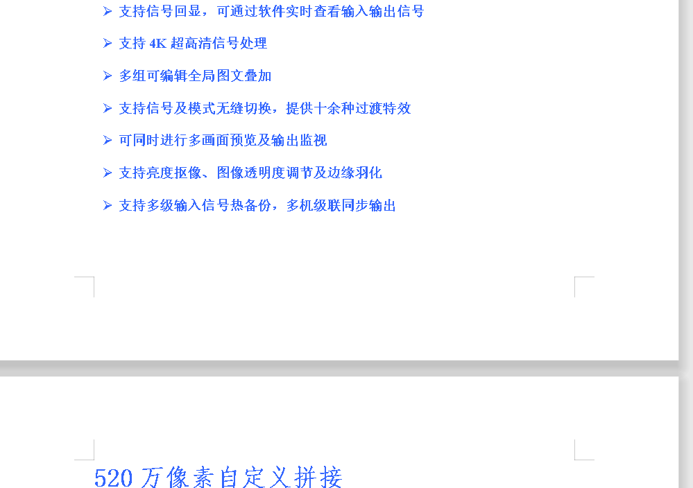 一鍵黑屏/藍(lán)屏 | ·一鍵輸出黑屏或藍(lán)屏信號(hào),常用于演藝活動(dòng)當(dāng)中 |