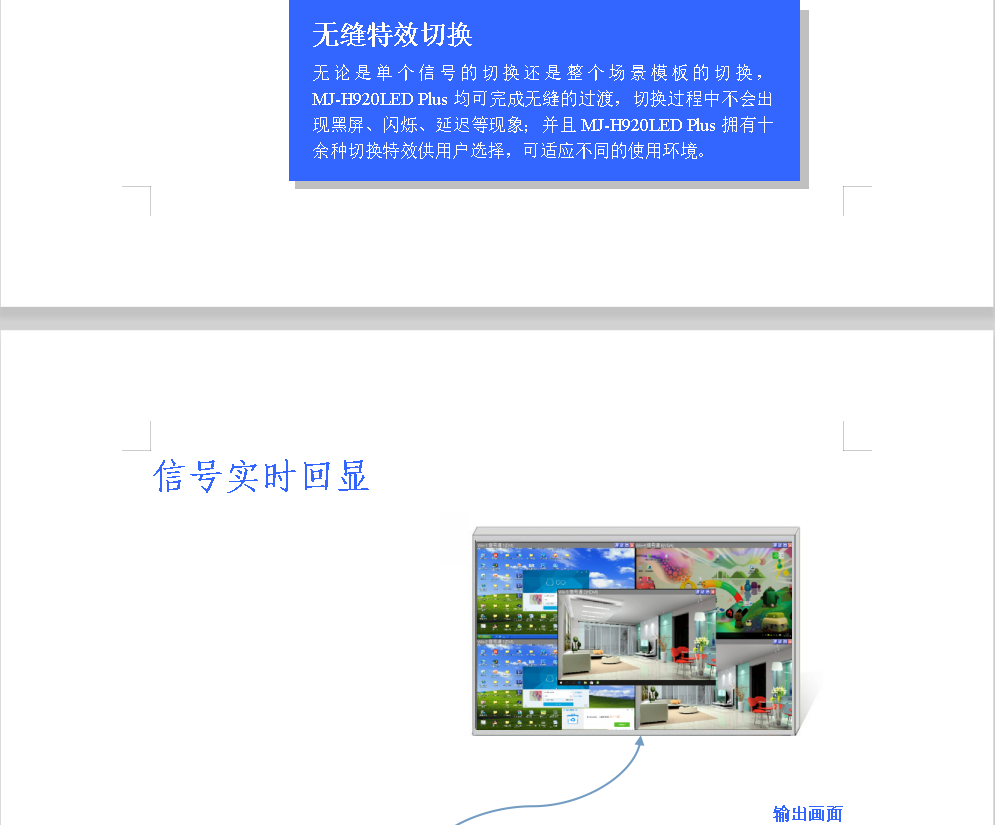 畫面回顯 | ·使用KYSTAR控制軟件可以在計(jì)算機(jī)上實(shí)時(shí)獲取MJ-H920LED Plus的信號(hào)畫面,包括輸入信號(hào)以及輸出信號(hào) |