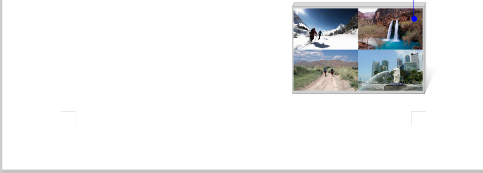 3畫面輸出 | ·同時(shí)在屏幕上呈現(xiàn)3個(gè)或3個(gè)以下的畫面,這些畫面可以來自不同或相同的輸入信號(hào) ·每個(gè)畫面均可自由縮放、布局,畫面之間可相互疊加 |