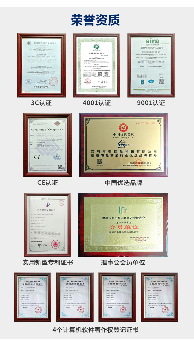 【深圳市美佳愛-液晶廣告機,觸摸一體機生產廠家電話400-997-9971】產品通過ISO9001_3C認證,主營多點紅外/電容式觸摸屏一體機,觸控查詢一體機,其他尺寸18.5寸21寸24寸27寸32寸40寸43寸46寸49寸55寸65寸75寸86寸98寸100寸多功能多媒體教學會議一體機,戶外立式/壁掛雙面廣告機,單機版/安卓網絡廣告機 豎屏樓宇電梯廣告機,長條型屏,工業級工控電腦觸摸顯示器,大尺寸觸摸屏查詢系統,商顯平板電腦電視,提供報價價格,安裝施工,售后維修等