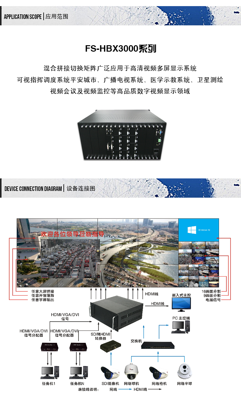 - 支持無縫切換,處理器內部集成高清信號處理機制,保證信號切換時無延時、無藍屏、無黑屏等中間過渡狀態。