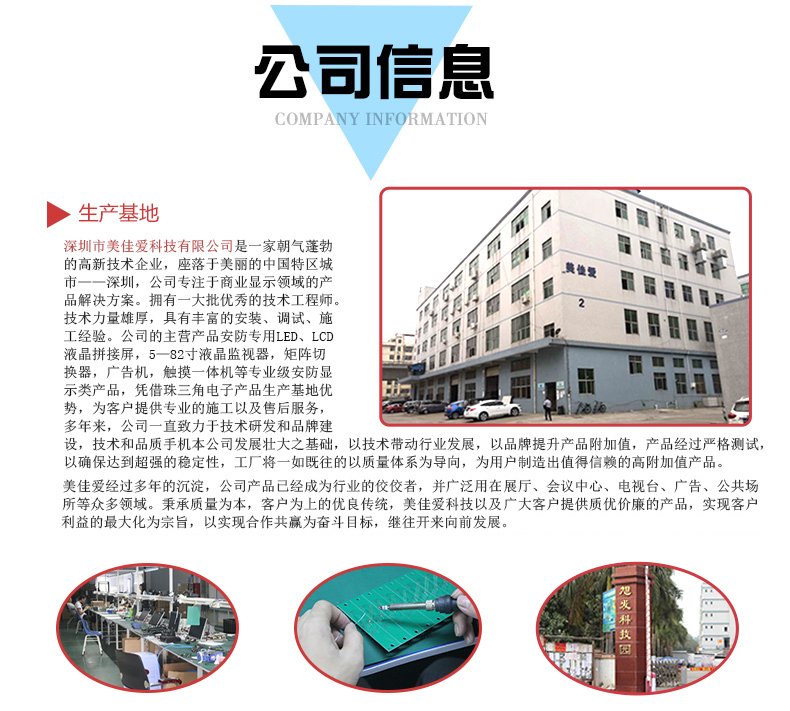 【美佳愛-4k液晶拼接屏生產(chǎn)廠家電話400-997-9971】工業(yè)級高清液晶監(jiān)視器產(chǎn)品通過ISO9001_3C_節(jié)能認(rèn)證等30多項(xiàng)認(rèn)證,主營22寸32寸40寸43寸46寸49寸55寸65寸75寸86寸98寸100寸工業(yè)級高清液晶監(jiān)視器,LG/京東方/三星大屏幕電視墻拼接單元,也有曲面,弧形,柔性,無縫LED顯示屏,顯示器,超窄邊高清監(jiān)視器,提供企業(yè)展廳展示,KTV,酒吧,會議室,視頻監(jiān)控系統(tǒng)解決方案設(shè)計(jì)-報(bào)價-安裝施工-售后超窄邊維修等服務(wù)